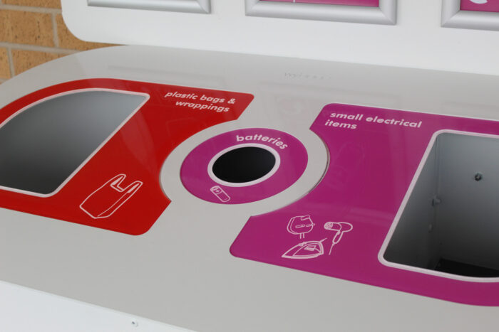 We recently manufactured a unit for a leading UK supermarket with soft plastics and waste electrical equipment recycling bins. By combining our bins with our recycling artwork and apertures, we can provide recycling solutions that are customisable in order to meet anyone’s needs.