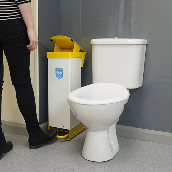 This sanitary bin is purpose-made for the disposal of sanitary towels and feminine waste, like tampons, period pads and wipes.