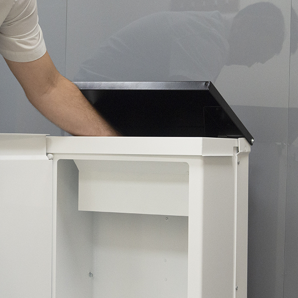 The Mental health bin is designed as a high security waste collection unit, and as such it has certain steps that must be followed to open, to prevent the public or patients gaining access to the contents.