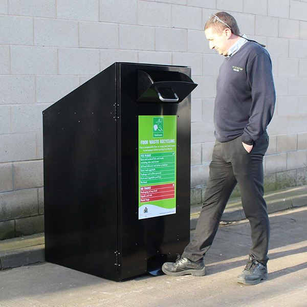 The Artemis Wheelie Bin Cover is available in different colours and can be used for several different waste streams, including food waste, plastic bottles and mixed glass. An optional foot pedal can be added if you don’t want to use the steel handle.