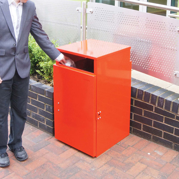 The BMB/40R Barnsley Recycling Bin offers a 112 litre capacity and makes a fantastic recycling station when three are grouped together on a stand as shown.