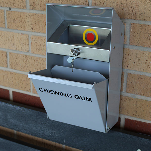 Inspired by our Tabtidy Cigarette End Container, this gum disposal bin comes with a lockable drop-down front door as standard, allowing for easy emptying. This unit can be wall or post mounted and is available in a range of standard colours, ideal for universities, colleges and high streets. The ‘Chewing Gum’ vinyl sticker to the front in black vinyl is included.