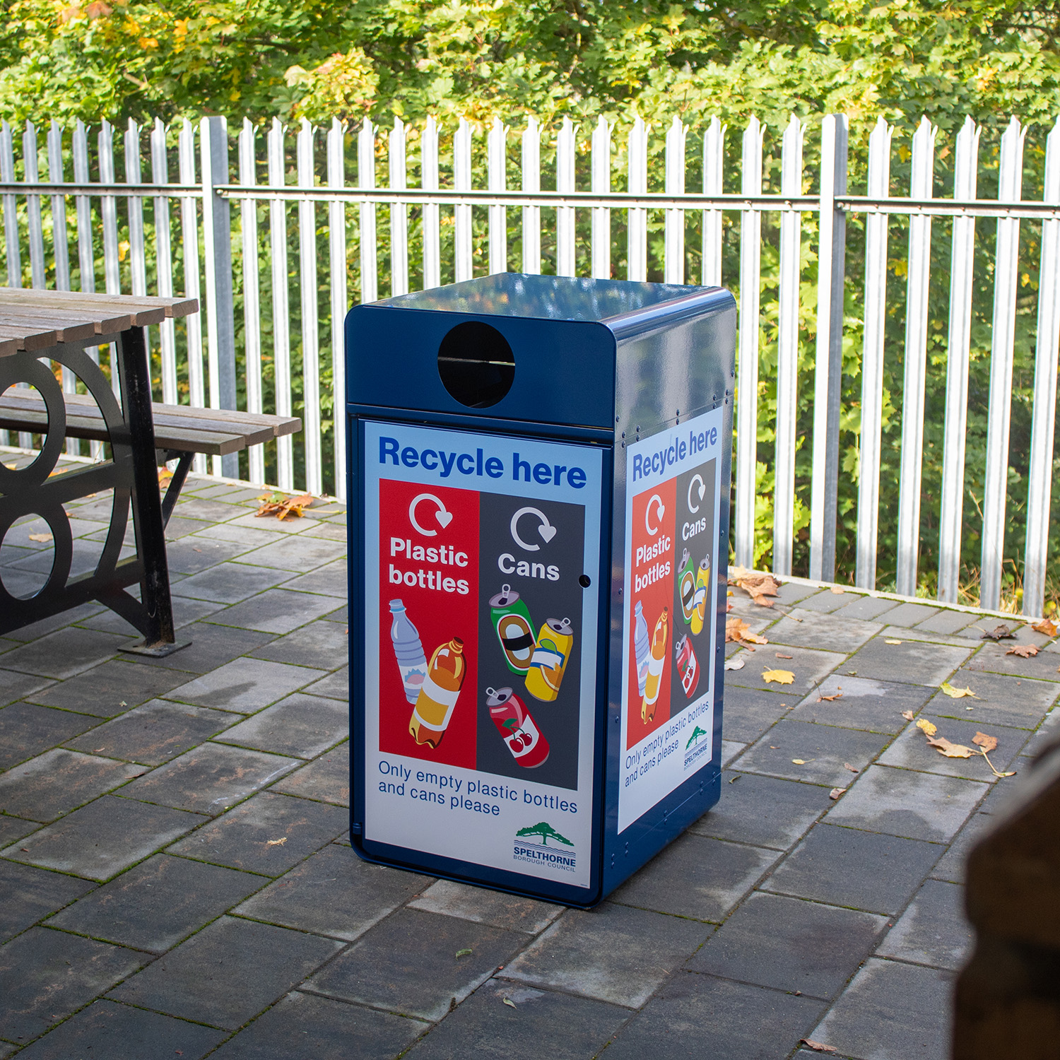 The Contour Litter Bin comes with a choice of galvanised steel frame colours and you can choose to have the door either the same colour, or a different colour to the surround. You can take a look at our finishes and colour range here. You can use vinyl artwork to depict the waste stream and ensure the right waste / recycling is collected.
