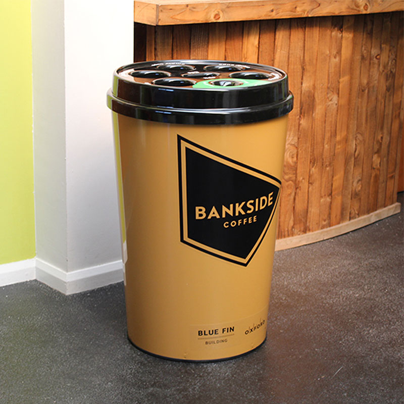 This coffee cup bin’s quirky design fits perfectly into contemporary environments, particularly coffee shops, offices and shopping centres. Shaped like a takeaway cup, we think this bin is eye catching and will encourage users to segregate and accurately dispose of their waste.