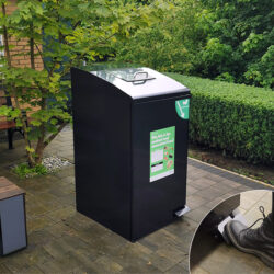 Disposing of your food waste couldn’t be easier; simply lift the flap using the stainless steel anti-microbial handle and deposit the rubbish into the awaiting wheelie bin. A gas strut is fitted to the lid to ensure a soft closing motion that gives the user enough time to put their food waste safely in the bin as the lid closes gradually.