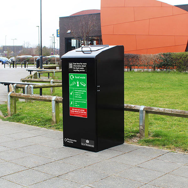 The FWWB is available in a range of colours, and comes with optional vinyl or perspex plates to signify that the unit is specifically for the collection of food waste.
