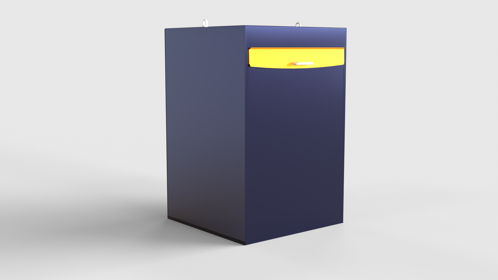 For depositing items into the bin, we have designed the doorway to accept large blades easily, but we’ve included an inclined baffle and two restrictors on the lift up flap that will completely prohibit people reaching into the bin to withdraw things. Additionally to this, we’ve then made an extended baffle inside the unit, at an opposing angle to the entry baffle, meaning you physically cannot get your arm into the bin to reach down inside it. Finally, the large square footprint of the bin means that deposited items land perfectly flat in the base of the unit, further reinforcing the disability to reach for items at the bottom.
