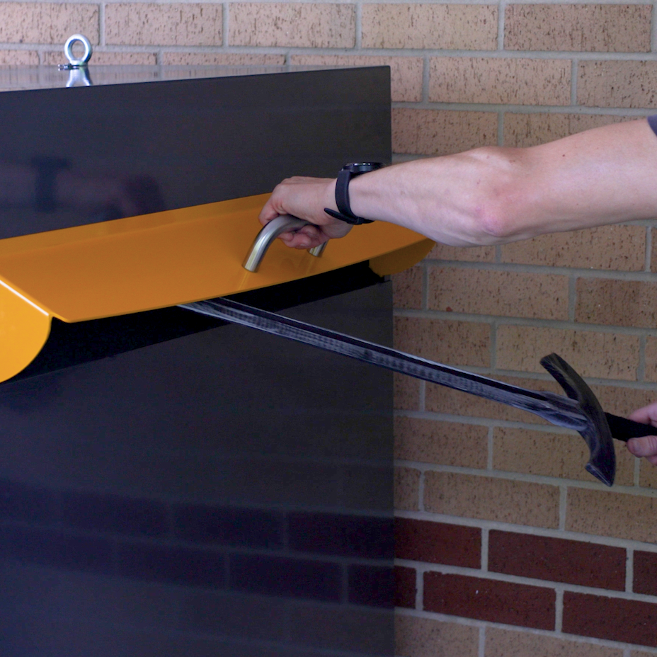 Depositing knives securely could not be easier with this unit; using the chute operation to the front of the unit, once an item is surrendered and deposited inside, it cannot be retrieved without secure access to the chosen method of locking. Internal steel panels (baffle system) ensure the items fall securely into the base. We’ve designed the footprint of the big to be wide and square, meaning all deposited items will fall flat and not stick up to be accessed from the outside.