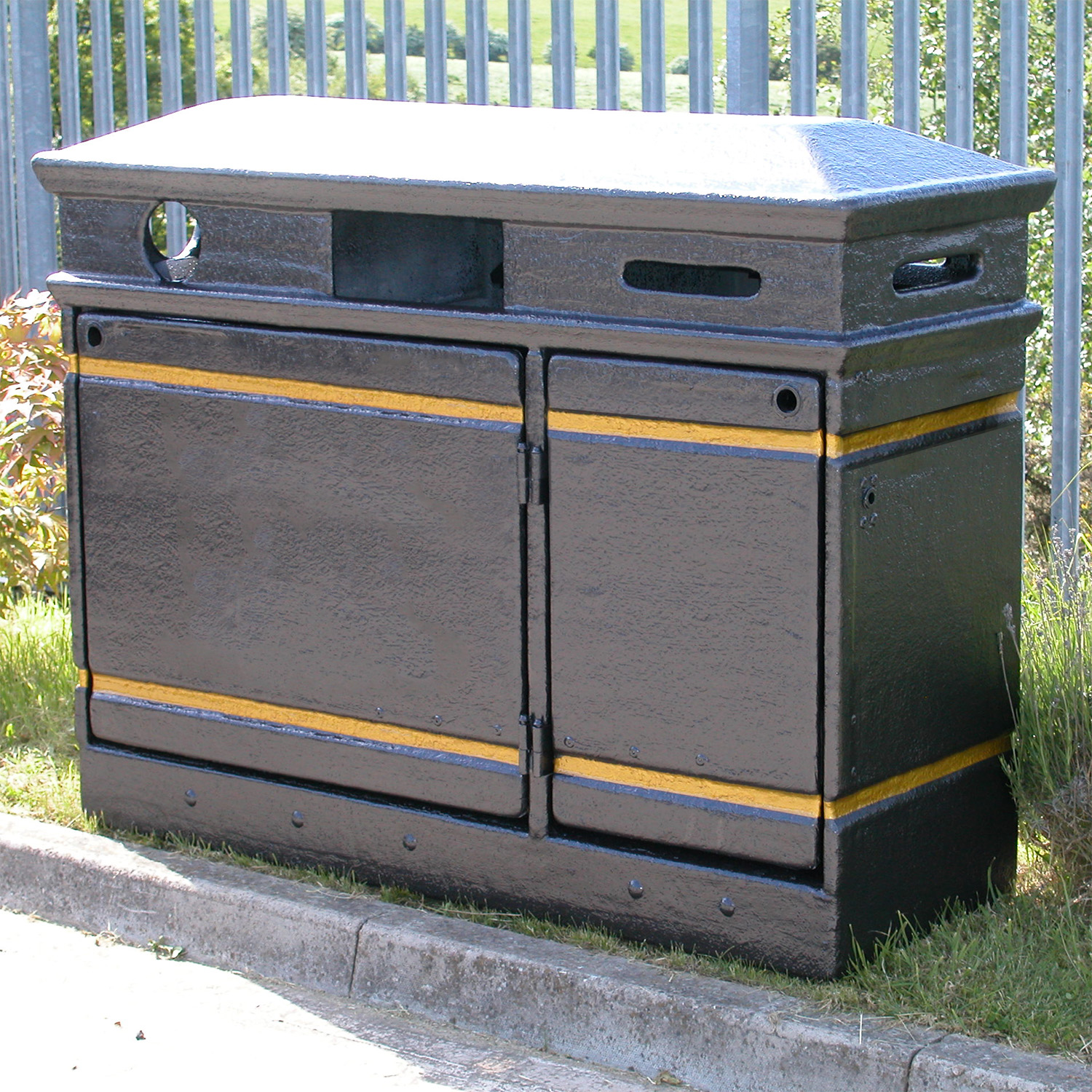 This specially adapted LBV/20 Triple Recycling Bin houses 3 x 112 litre galvanised steel liners to collect separate waste streams.