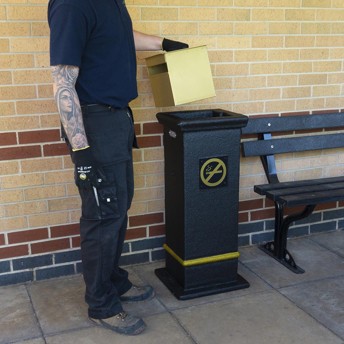 As well as your choice of finishes and colours, this bin comes with ‘No Smoking’ perspex plates fitted to the front and back as standard and a large flat ashtray that sits flush within the top.