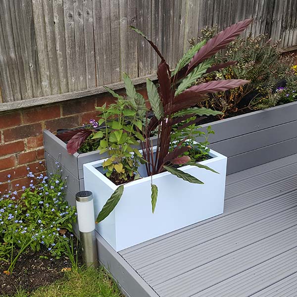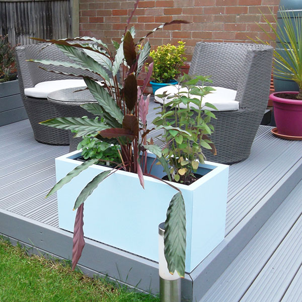 Absolutely! This flower planter has been purpose-made for gardens and can easily match grey and pastel blue-coloured decking, fences and sheds.