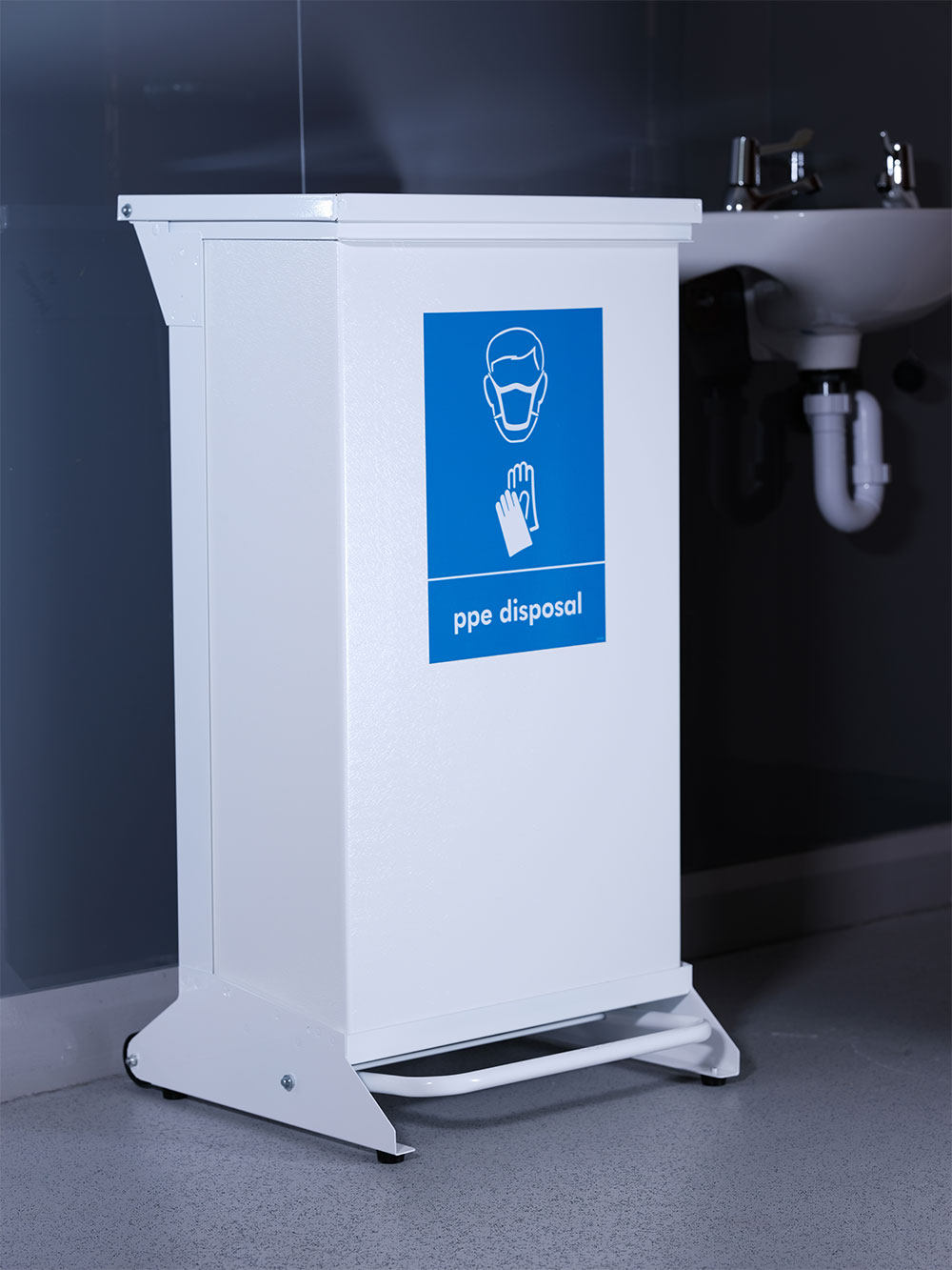 This PPE Disposal Metal Sack Holder is a large capacity clinical waste bin, specifically designed and manufactured to meet strict NHS requirements. This large bin is suitable for clinical or domestic waste and comes in a choice of waste segregation colours.