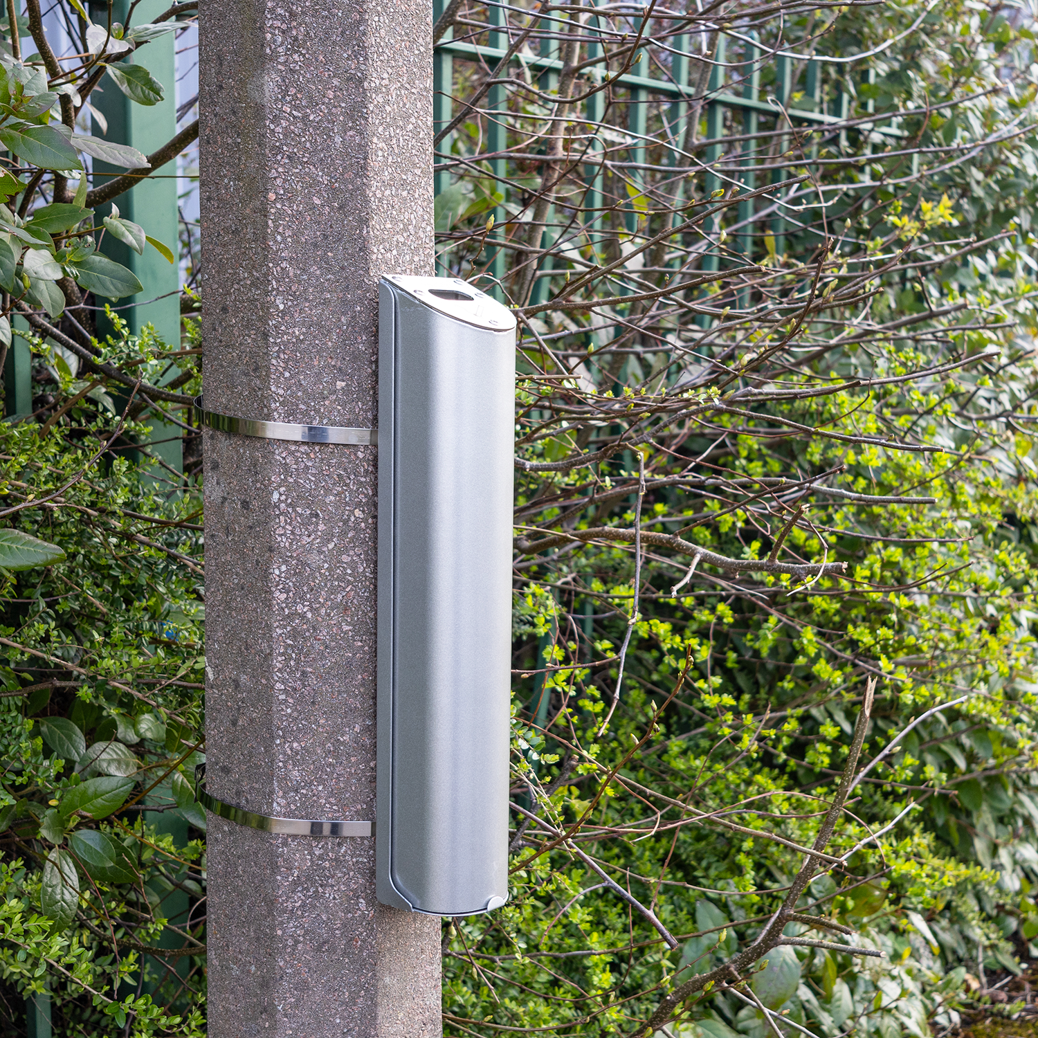 No space? No problem! Its slimline design gives it an incredibly small footprint and takes up virtually no space at all. Perfect for high streets or high footfall areas where a large litter bin with ash tray top is would not fit.