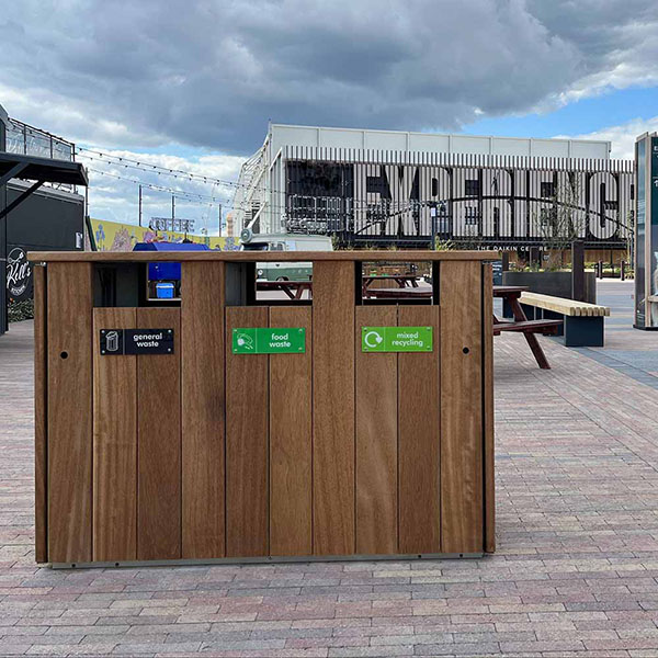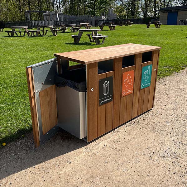 The WTS/8 Triple Iroko Wood Litter & Recycling Bin
