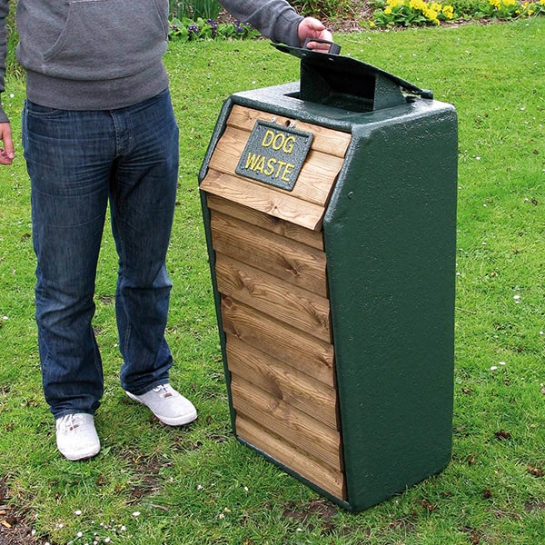 This free standing, 91-litre capacity dog waste bin features a glass fibre composite body and timber fronted slats with optional recycled slats, creating a stylish, durable dog waste bin, perfect for parks. The lift-up chute makes dog waste disposal easy, masking the unpleasant odour when the lid is down and prevents the public from gaining unauthorised access. Glass fibre composite is extremely tough, with resistance against vandal, rust and corrosion damage, allowing you to leave this dog waste bin outside all year round with low maintenance requirements.
